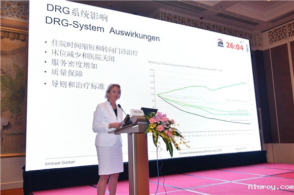 德国海德堡大学附属医院行政总监、首席财务官Gurkan作了关于DRG体系下的运营管理的主题演讲。她详细向与会代表详细介绍了德国医疗卫生现状,海德堡大学附属医院进行DRGs体系下的运营管理,如何保证医院的良性发展。从医院应用DRGs背景、DRGs带来的变化、提高医院管理效率措施等方面,和与会代表们分享了海德堡大学附属医院从2003年开始实施DRGs以来15年的实践经验,她认为只有积极参与DRGs应用,才能及时发现问题并调整目录适应系统,通过不断开发更新DRGs系统,以提高医院管理水平,促进医院发展。