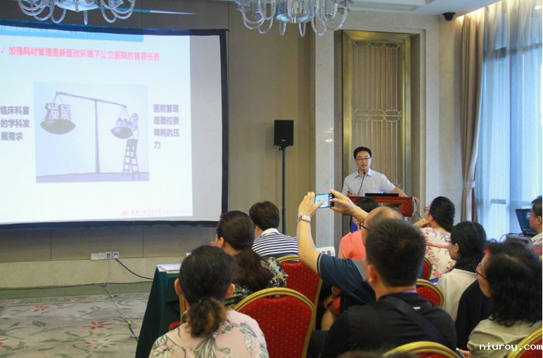 武汉大学中南医院副院长李志强作为神经外科专家,从管理和临床两个角度,给大家做了题为“医用耗材精细化管理促进学科建设的实践”的演讲。针对临床普遍存在的医疗技术发展与耗材管控的矛盾,李院长首先提出了管理部门应主动作为的地方,包括根据价格调整耗材使用、关注耗材“跑冒滴漏”、运行成本和专科专用非收费材料使用等。随后,李院长以神经外科高通量搭桥治疗巨大动脉瘤手术为例,阐述了临床科室在耗材管控中应主动作为的环节。李院长的演讲为在场管理者开启了新的思路,现场反应强烈。
