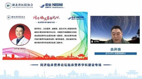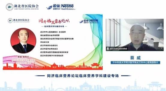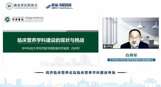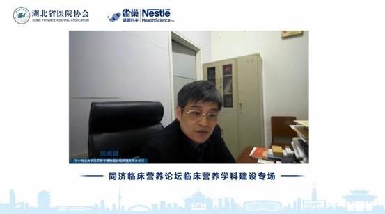 首先,华中科技大学同济医学院附属同济医院刘继红院长致辞,他介绍了同济医院和同济医院临床营养科近年来取得的丰硕成绩,同济医院临床营养科在自身高质量发展的同时,也充分发挥了区域带头作用,推动了全省临床营养学科的发展,完成了湖北省临床营养科新增医疗服务收费项目的转正工作并牵头或参与制定了多部临床营养指南和专家共识,为湖北省乃至全国临床营养学科发展做出了巨大的贡献。由于疫情防控的原因,同济临床营养论坛采取了线上交流的形式进行,希望各位临床营养专家同道可以在线上远程充分的交流讨论。