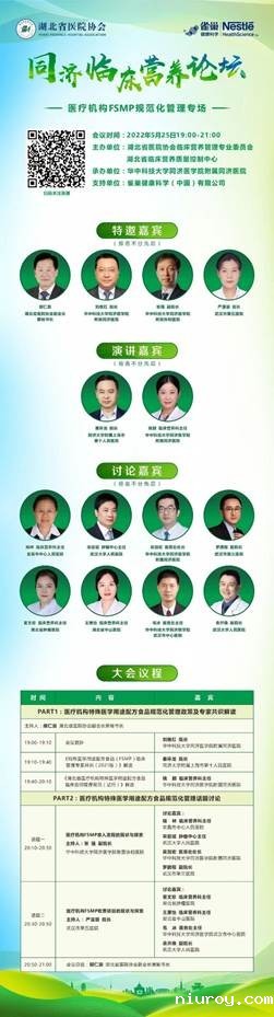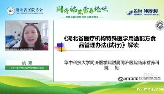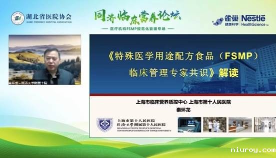 2022年5月25日,同济临床营养论坛——医疗机构FSMP规范化管理专场通过网络直播的形式在线上成功召开。本次论坛由优米资料app临床营养管理专业委员会和湖北省临床营养质量控制中心主办,华中科技大学同济医学院附属同济医院承办,会议以“医疗机构FSMP规范化管理”为主题,交流和探讨了医疗机构FSMP规范管理相关内容。2020年12月8日,湖北省卫生健康委员会印发了《湖北省医疗机构特殊医学用途配方食品临床应用管理规范(试行)》。2021年7月,国家卫健委医院管理研究所组织专家起草并发表《特殊医学用途配方食品(FSMP)临床管理专家共识(2021版)》。本次会议特别荣幸邀请到了该专家共识起草的牵头专家,同济大学附属上海市第十人民医院秦环龙院长解读了专家共识制定的背景以及主要内容,并做了主题分享。