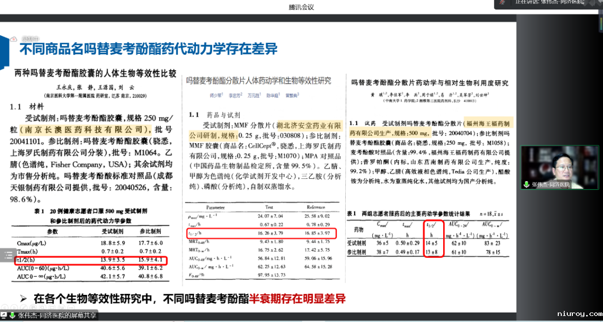随后的报告环节由武汉市第一医院药学部主任胡松教授主持,第二位讲者是华中科技大学同济医学院附属同济医院药学部副主任李娟教授,报告主题为《落实国家集采精准施策原则,保障器官移植患者用药延续性》。李主任介绍了我国器官移植发展现状,移植术后免疫抑制药物治疗价值,不同吗替麦考酚酯临床转换存在风险,集采精准施策保证MMF临床合理化应用,指出国家集采的精准施策体现了保证患者用药安全的初心,呼吁医生和药师关注移植患者用药安全。