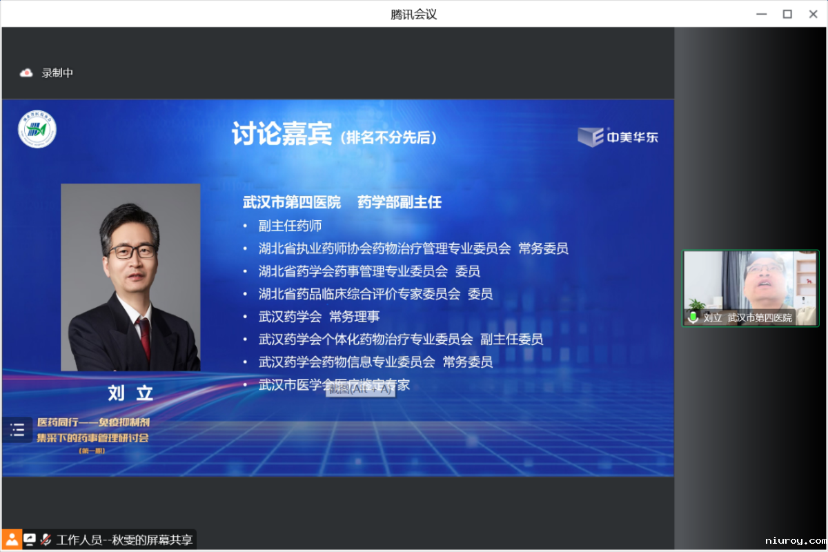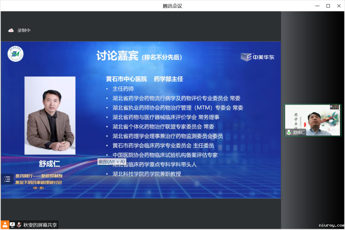 胡松主任总结了李娟主任的讲课,并发起主题为“在当前精准化集采政策背景下,医院层面MMF药品管理建议”的讨论。武汉市儿童医院药学部主任徐华教授、荆门市第二人民医院药学部主任谢峥教授、恩施州中心医院静配中心主任杨春云教授和黄石市中心医院药学部主任舒成仁教授参加讨论。专家们就吗替麦考酚酯的集采情况进行了讨论,强调在集采背景下首要任务是要保证患者用药安全,其次就集采报量的技巧,需要通过不断摸索不断学习,实现精准报量。与此同时,药学人员应提升药学服务质量,对患者进行风险评估,进行不同层级的风险管控。