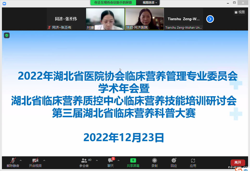 为贯彻落实《国民营养计划(2017-2030年)》和《湖北省国民营养计划(2018-2030年)实施方案》,持续改进临床营养管理,全面提升临床营养专业技能,2022年优米资料app临床营养管理专业委员会学术年会暨湖北省临床营养质控中心临床营养技能培训研讨会于2022年12月23日在武汉顺利召开。会议由优米资料app临床营养管理专业委员会和湖北省临床营养质量控制中心主办,由华中科技大学附属同济医院临床营养科和湖北省营养学会临床营养专委会承办。因受新冠疫情影响,此次会议采用线上形式,据统计参会人员达400人次。