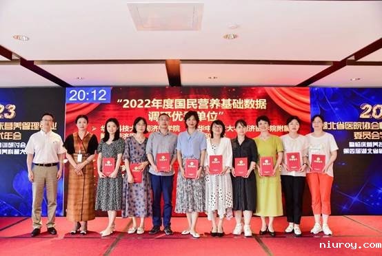 韩婷教授和姚颖教授为2023上半年度优秀质控单位和2022年度国民营养基础数据调研优秀单位颁奖。充分肯定了各医院临床营养科为湖北省临床营养做出的贡献。