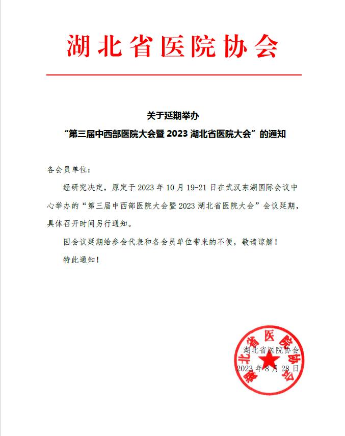 关于延期举办“第三届中西部医院大会暨2023湖北省医院大会”的通知