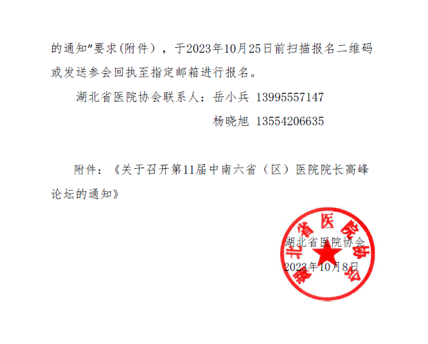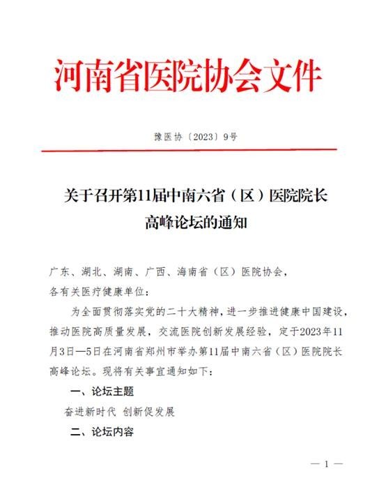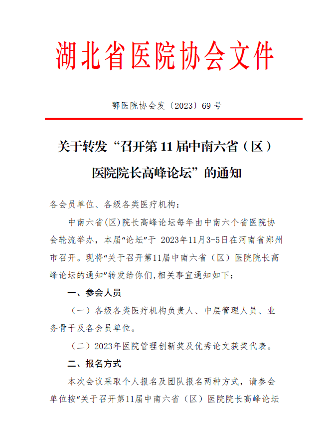 关于转发“召开第11届中南六省(区)医院院长高峰论坛”的通知