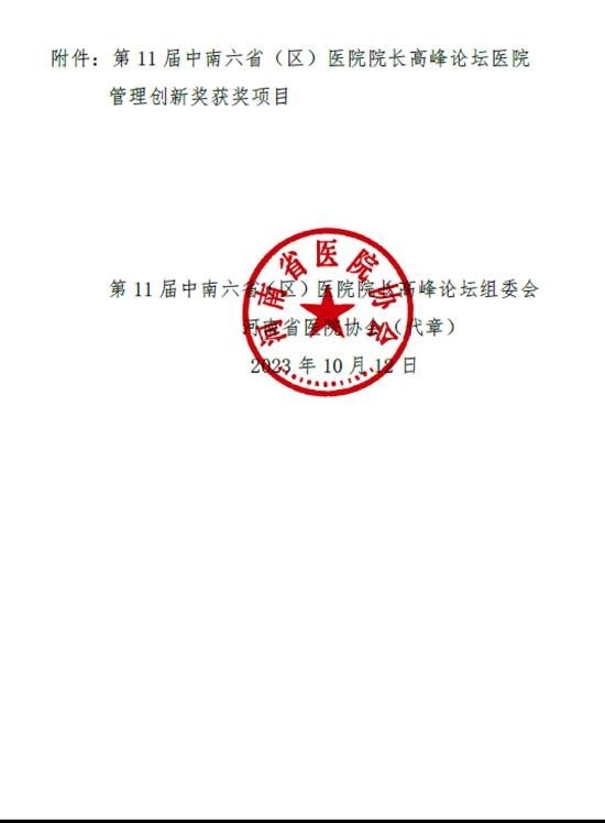 转:关于表彰第11届中南六省(区)医院院长高峰论坛医院管理创新奖的决定