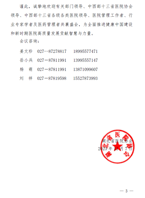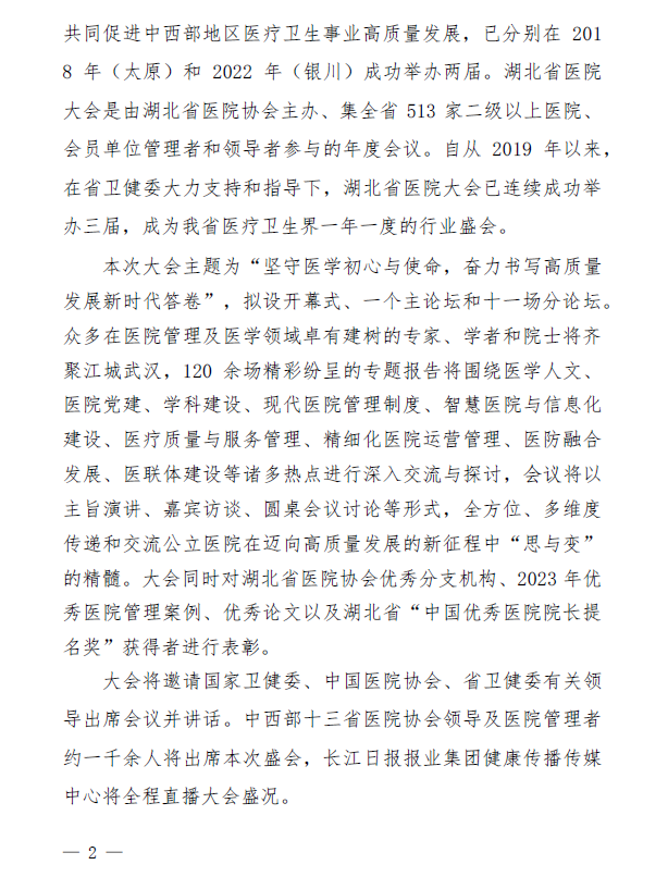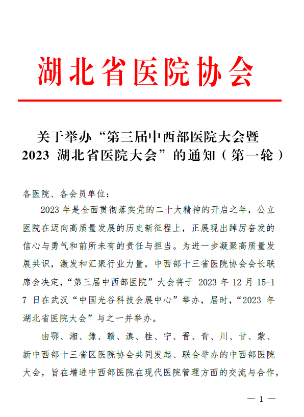 关于举办“第三届(武汉)中西部医院大会暨2023 湖北省医院大会”的通知(第二轮)