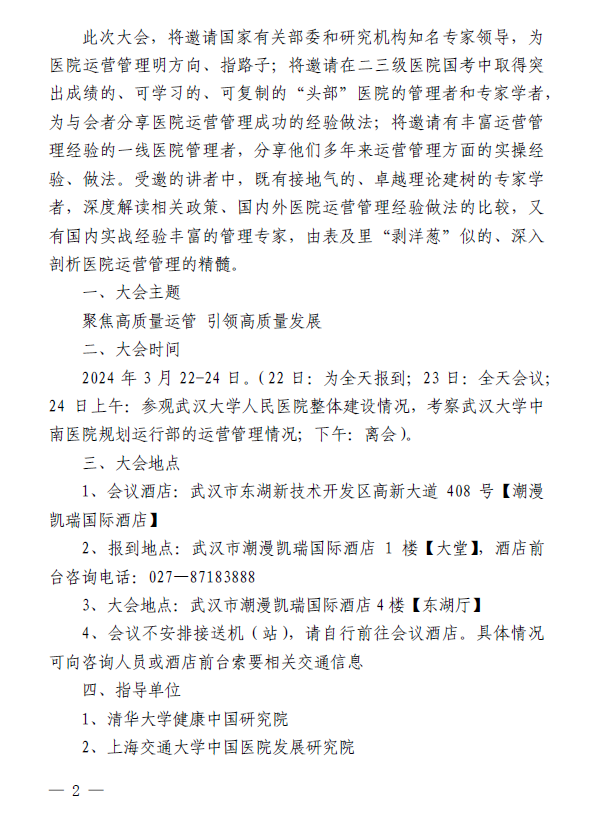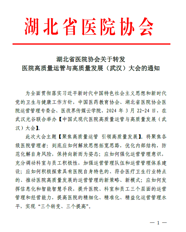 优米资料app关于转发医院高质量运管与高质量发展(武汉)大会的通知