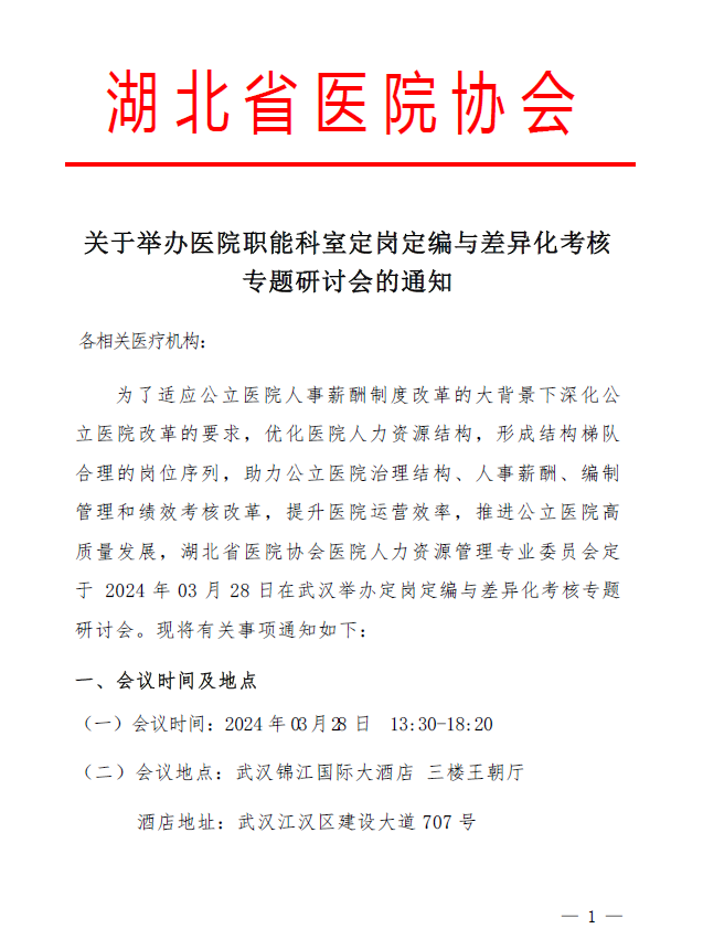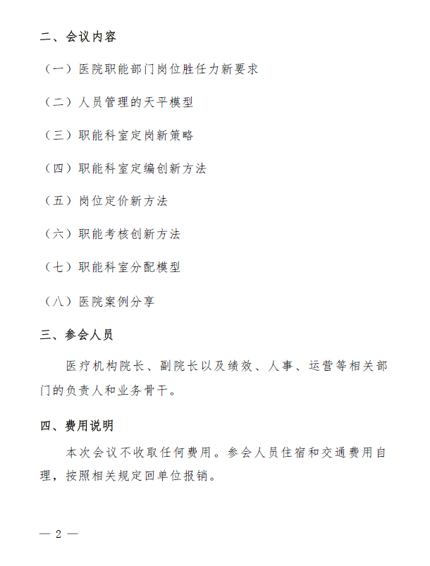关于举办医院职能科室定岗定编与差异化考核专题研讨会的通知