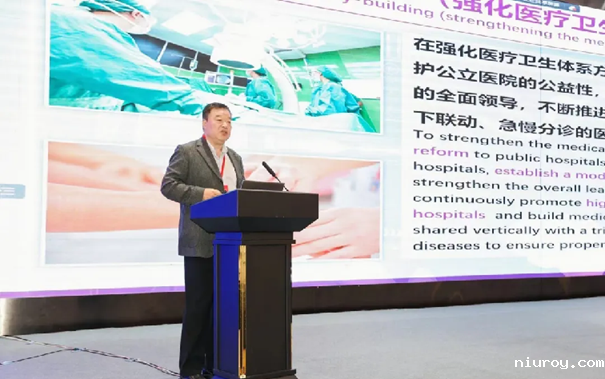(国家卫健委医院管理研究所医疗政策部主任董四平同志在演讲)