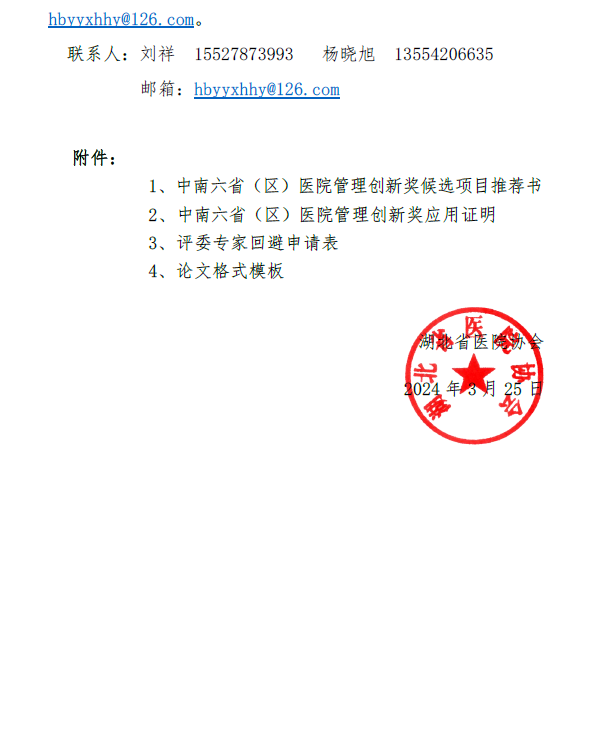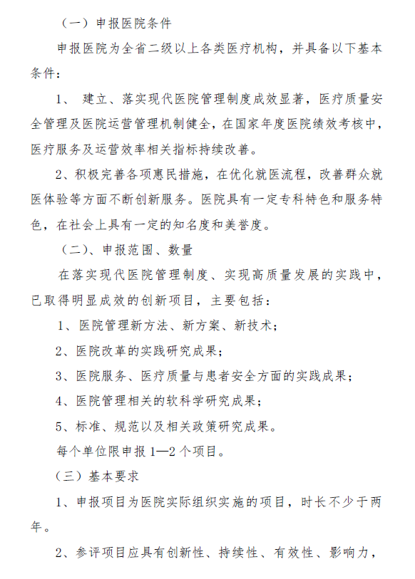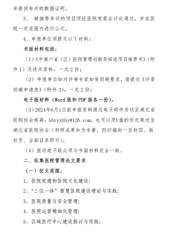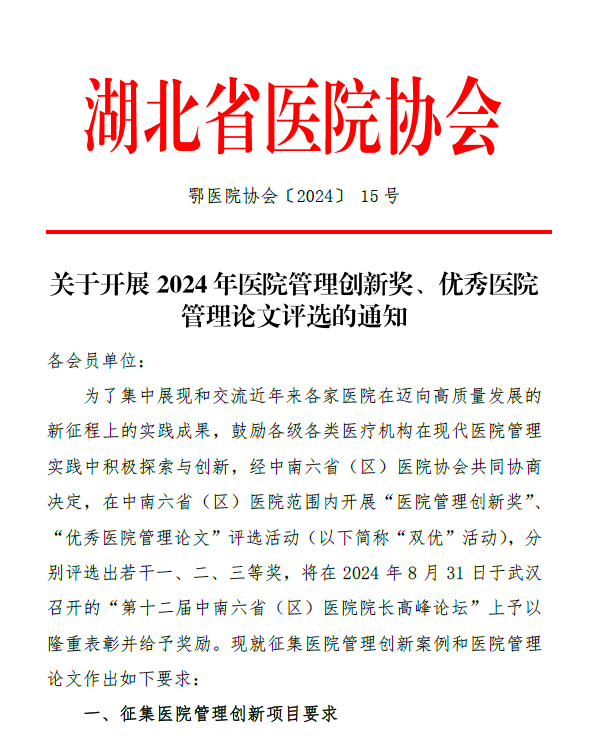 关于开展2024年医院管理创新奖、优秀医院管理论文评选的通知