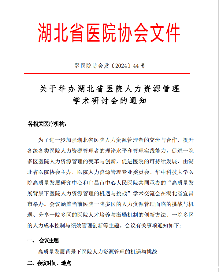 关于举办湖北省医院人力资源管理学术研讨会的通知