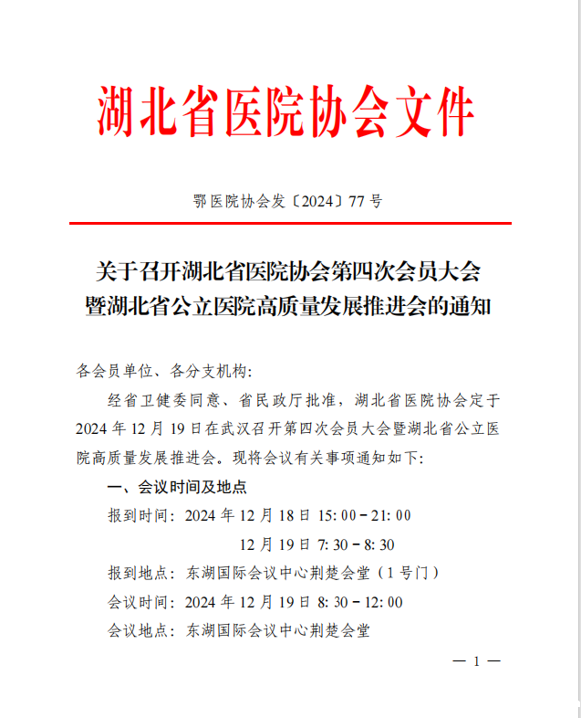 关于召开优米资料app第四次会员大会暨湖北省公立医院高质量发展推进会的通知